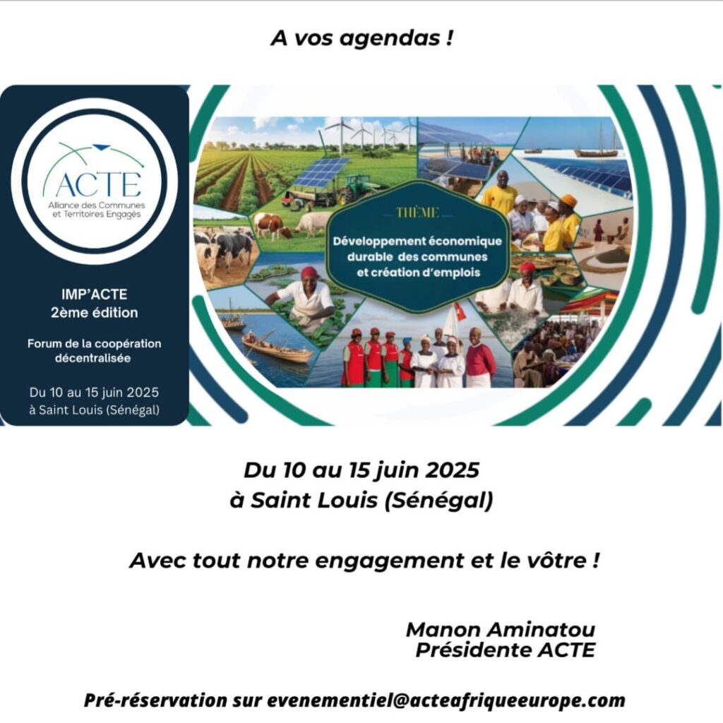 Après une première édition en France, l’Alliance des Communes et Territoires Engagés (ACTE) organise la deuxième édition du Forum IMP’ACTE en Afrique.
